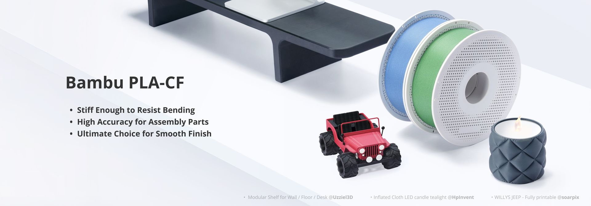 Bambu PLA-CF biedt superieure mechanische eigenschappen terwijl het de printbaarheid van reguliere PLA behoudt met een laag risico op verstoppingen. De verbeterde stijfheid en sterkte maken het geschikt voor het printen van dragende onderdelen. Als een van de beste concealers van laaglijnen produceert het verbluffende afdrukken met ultra-gladde oppervlakken.