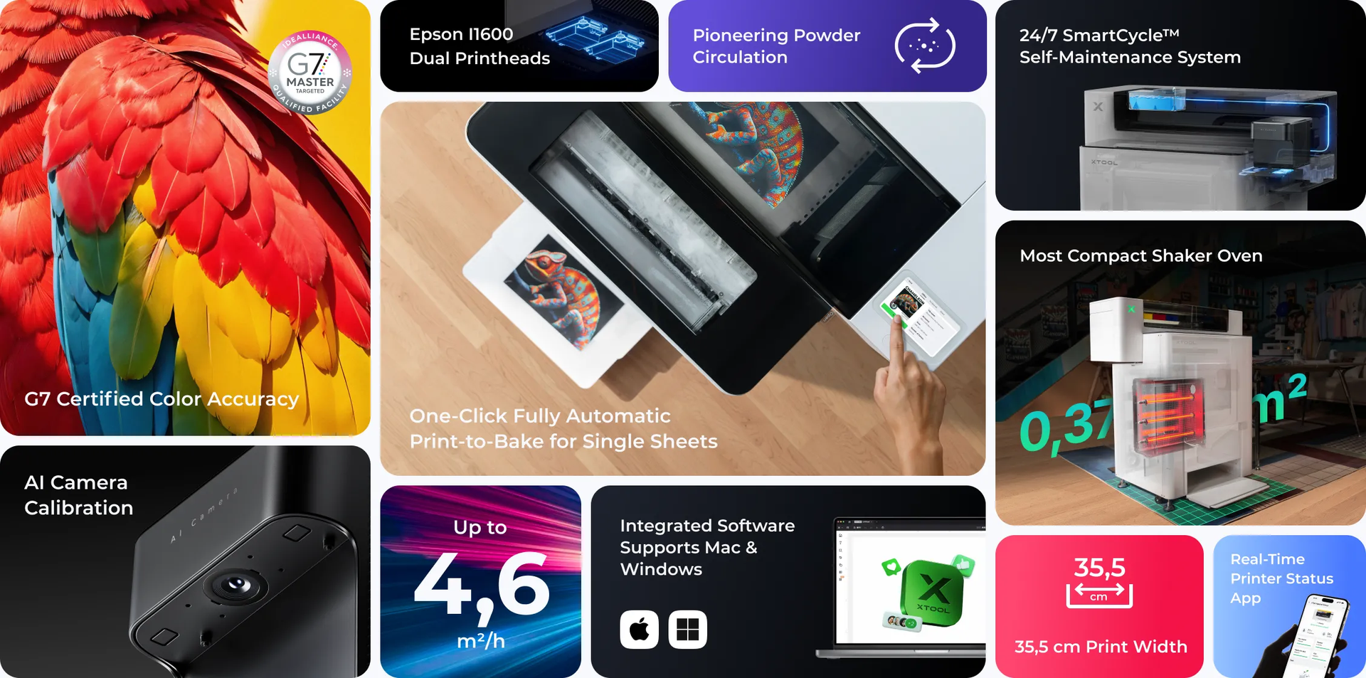 - Commercial Grade Printings: Epson I1600 dual printheads with G7 Certified color accuracy.